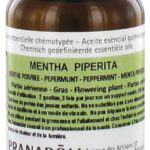 Mentha piperita Producto híbrido de Mentha aquatica y de Hierbabuena, esta planta de 80 cm es muy vivaz. Sus tallos son cuadrangulares, las hojas ovaladas, afiladas y dentadas. Habita en terrenos frescos, arcillosos y calcáreos. Su destilación se lleva a cabo en junio, justo antes de la floración. Es un producto es un producto que actúa como expectorante, antiinflamatorio y tónico estimulante general.