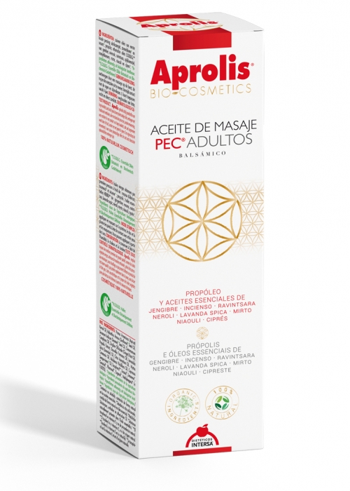 Aprolis Aceite de Masaje Pectoral de Dietéticos Intersa es un producto a base de aceites esenciales 1ue actúan como descongestionantes, mucolíticos y relajantes de la zona pectoral.
