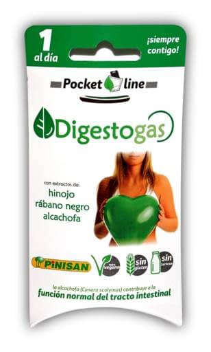 Digestogas Pocket de Pinisan es un complemento alimenticio que contribuye a la función normal del tracto digestivo.