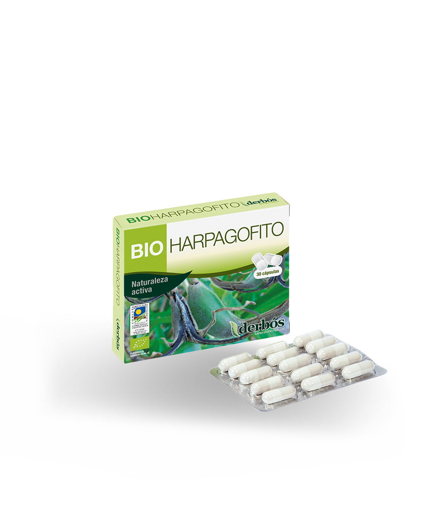 Ayuda para fortalecer el sistema locomotor. Complemento alimenticio a base de la planta harpagofito 100% ecológica. El Harpagofito se ha empleado desde la antigüedad como analgésico, remedio para la fiebre y las alergias. Es beneficioso para aliviar dolores en las articulaciones, dolores musculares y trastornos digestivos. También es útil para tratar infecciones del tracto urinario, úlceras y enfermedades de la sangre. Hoy en día, se sabe que estas moléculas tienen una actividad antiinflamatoria natural.